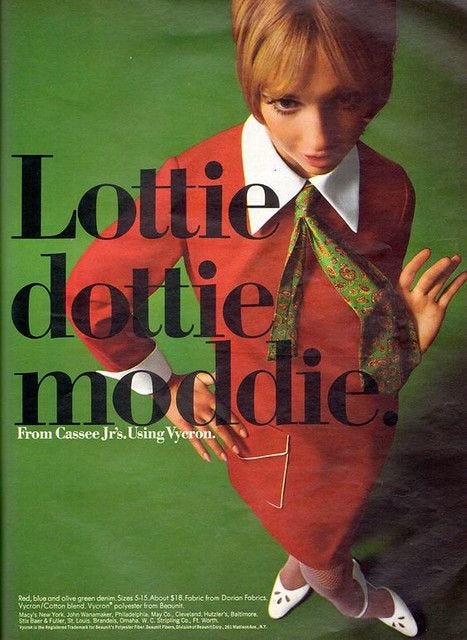 ꕥ And for your visual pleasure, today’s Pinterest-of-the-Now: this isn’t actually of the now-now, but I’ve been fascinated by this topic for some time. One of my big problems with the e-commodification of vintage fashion — especially of the sixties and seventies — is the lack of credit most bandwagon ‘aesthetic’ accounts and posts grant their primary sources. This results in lesser-known models who weren’t tethered to a rock-star (especially if that rock-star was a Beatle and they were blonde) or bonafide media sensations in their own rights (Twiggy, Tree, Moffitt, et al) getting lost to the sands of time. The same happens to clothing brands and boutiques that weren’t Quant-adjacent or BIBA, and don’t even get me started about the full-blown epidemic of ‘vintage aesthetic’ accounts cropping out the catalog numbers of vintage sewing patterns. Thumbs-down, un-follow.
